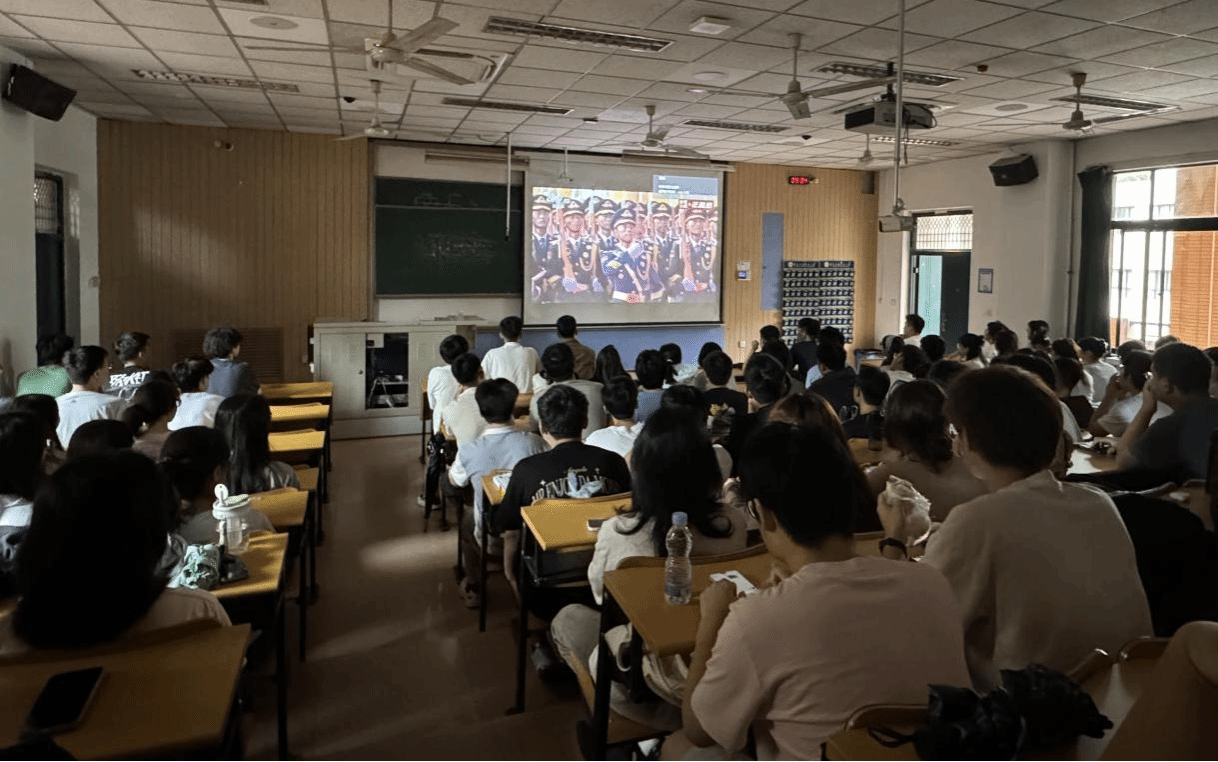 2025年9月3日上午,纪念中国人民抗日战争暨世界反法西斯战争胜利80周年大会在北京天安门广场隆重举行。为弘扬伟大爱国主义精神,激发同学们的民族自豪感与历史使命感,未来技术学院师生在南阶303集体观看了这场气势恢宏、振奋人心的盛典,感受国威军威,凝聚奋进力量。