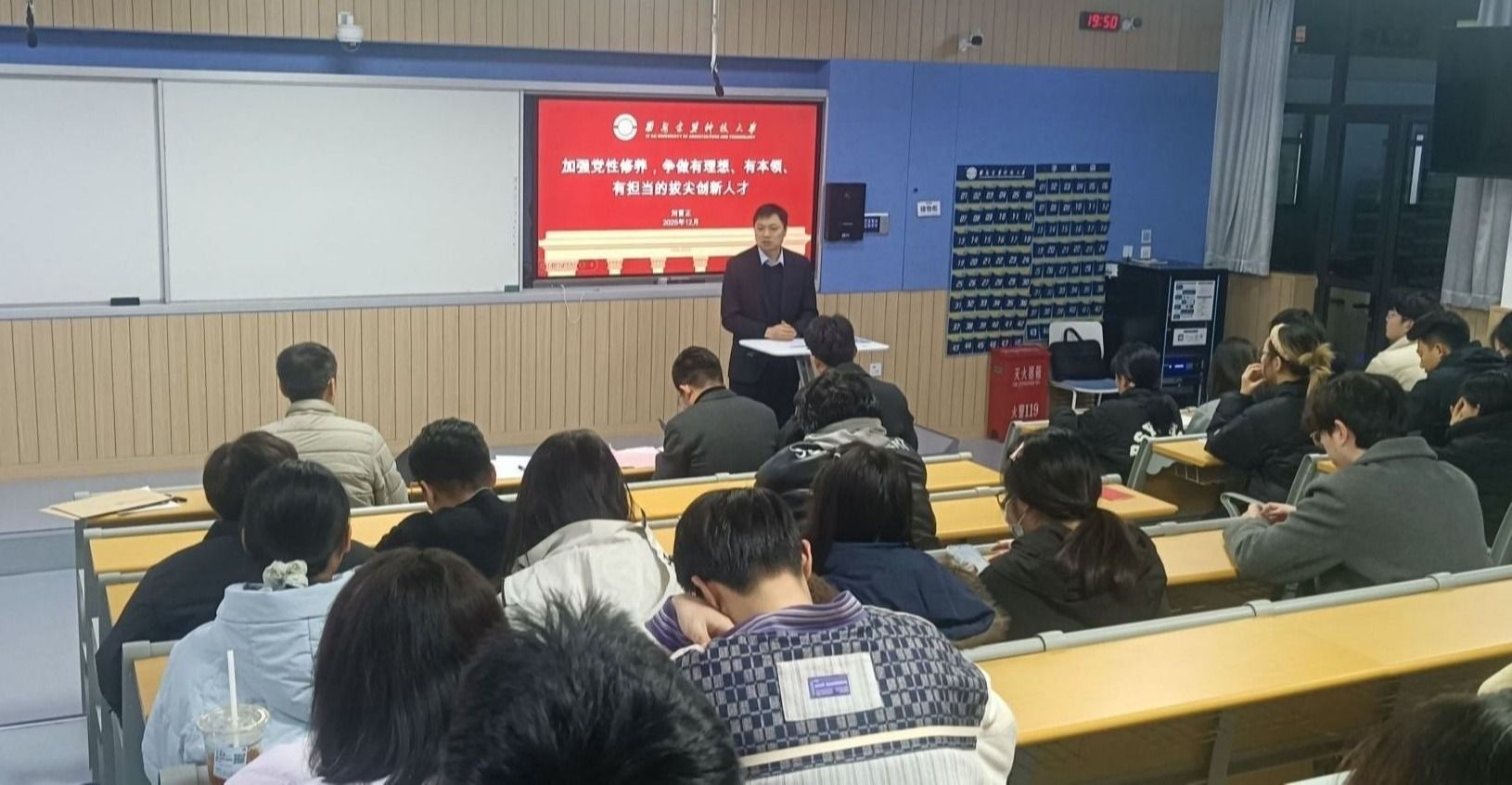 12月18日,未来技术学院直属党支部在东阶201教室召预备党员转正暨接收预备党员支部大会,支部全体党员参加会议,会议由支部副书记孙灵通主持。